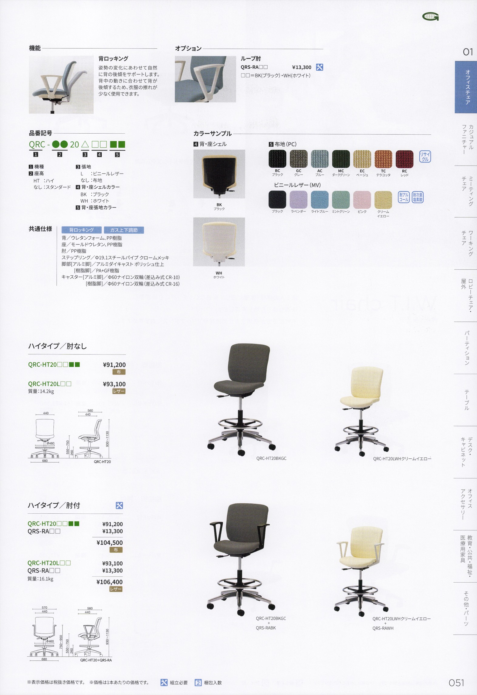 QRC-HT20ハイタイプ 肘付き 布 ロッキング機能付きチェア