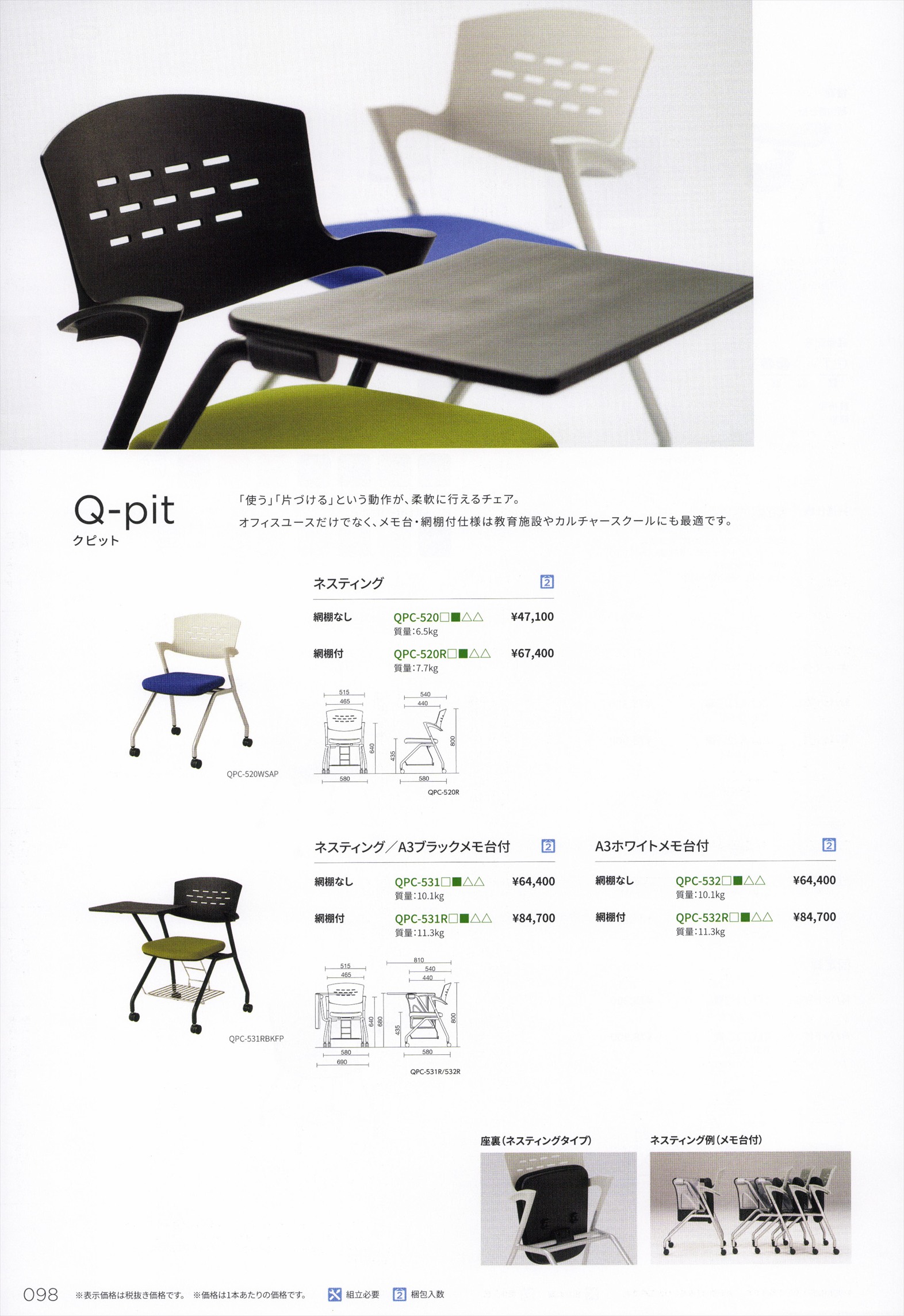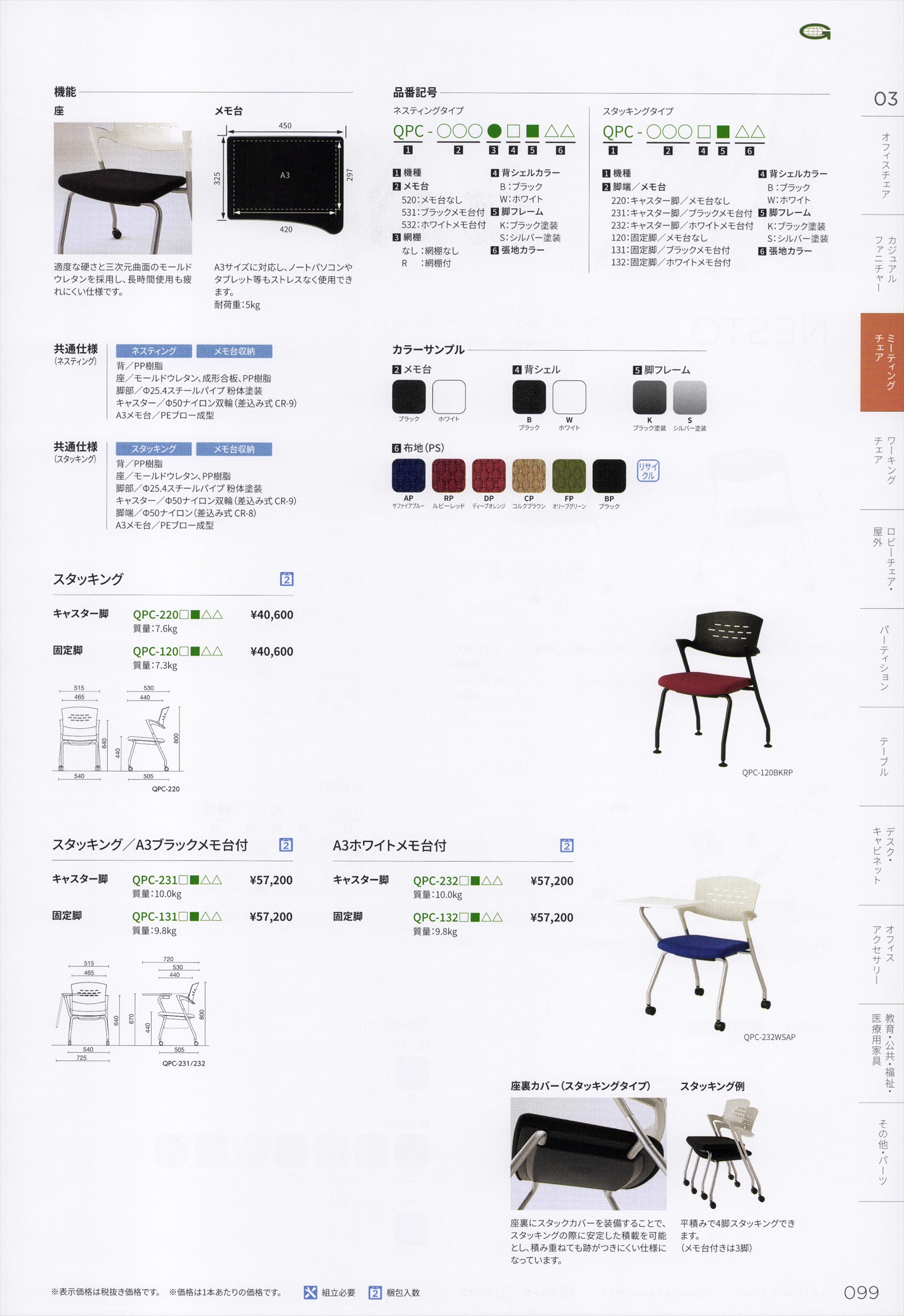 QPCー520 キャスター脚 シェル、脚部色選択 張地選択