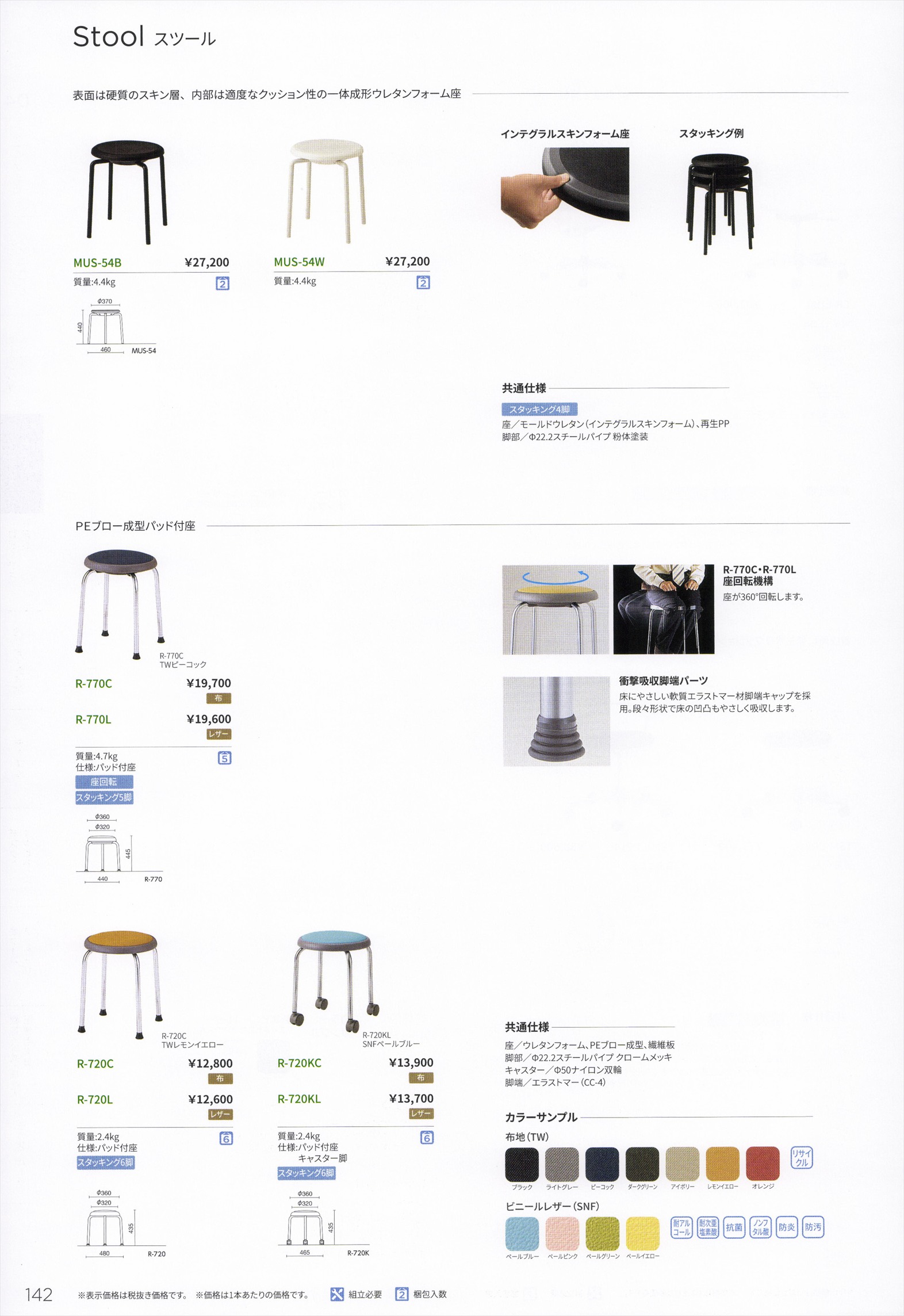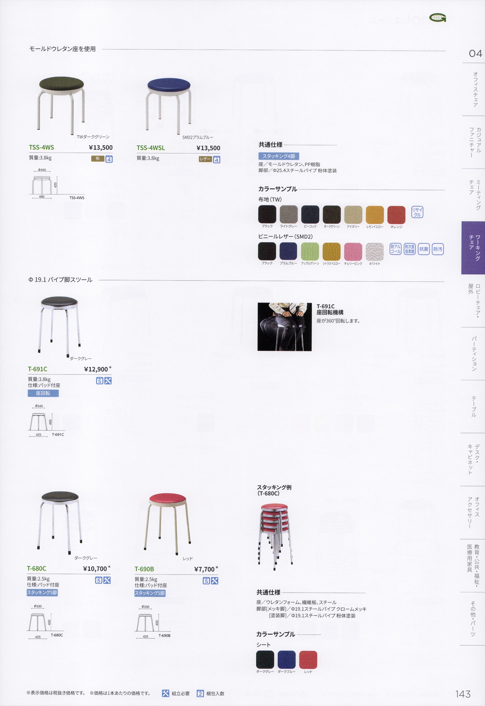 TSSー4WS 丸スツール スタッキング 張地選択