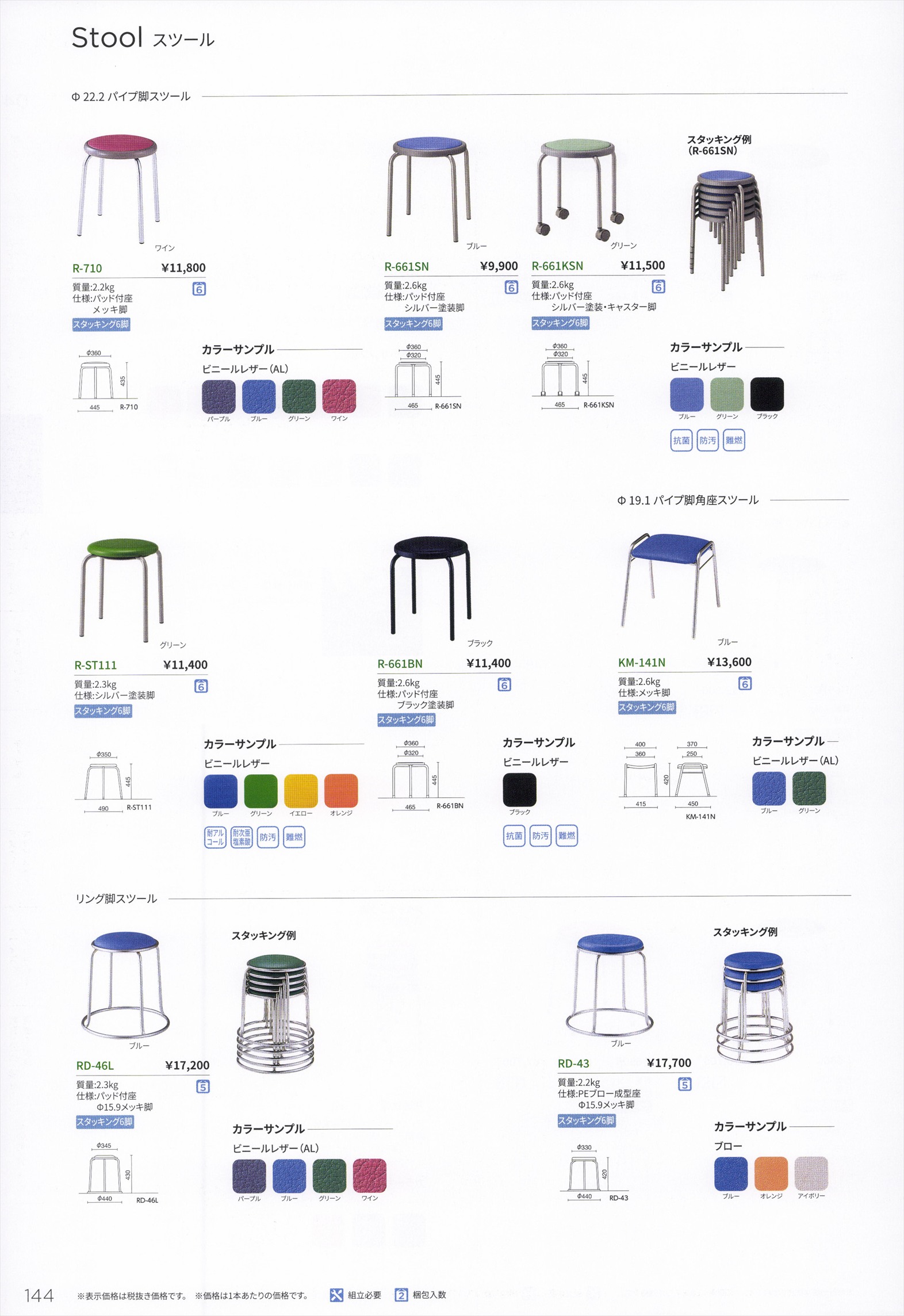 リング脚スツール RD-43 メッキ脚 スタッキング6脚
