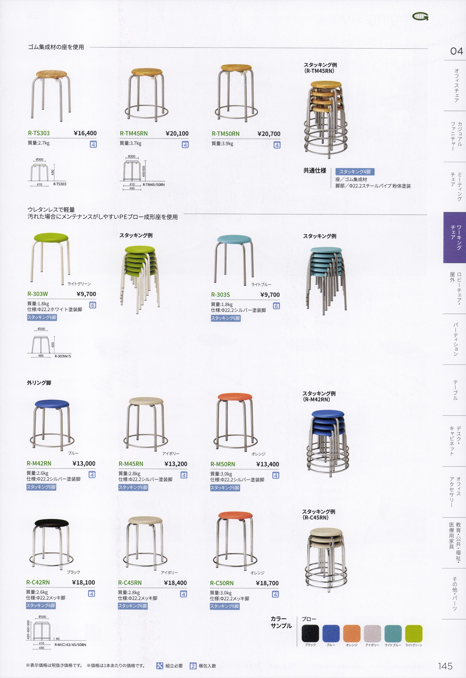 R-M45RN 外リング 座面ブロー成型(6色より選択) 丸スツール 塗装脚