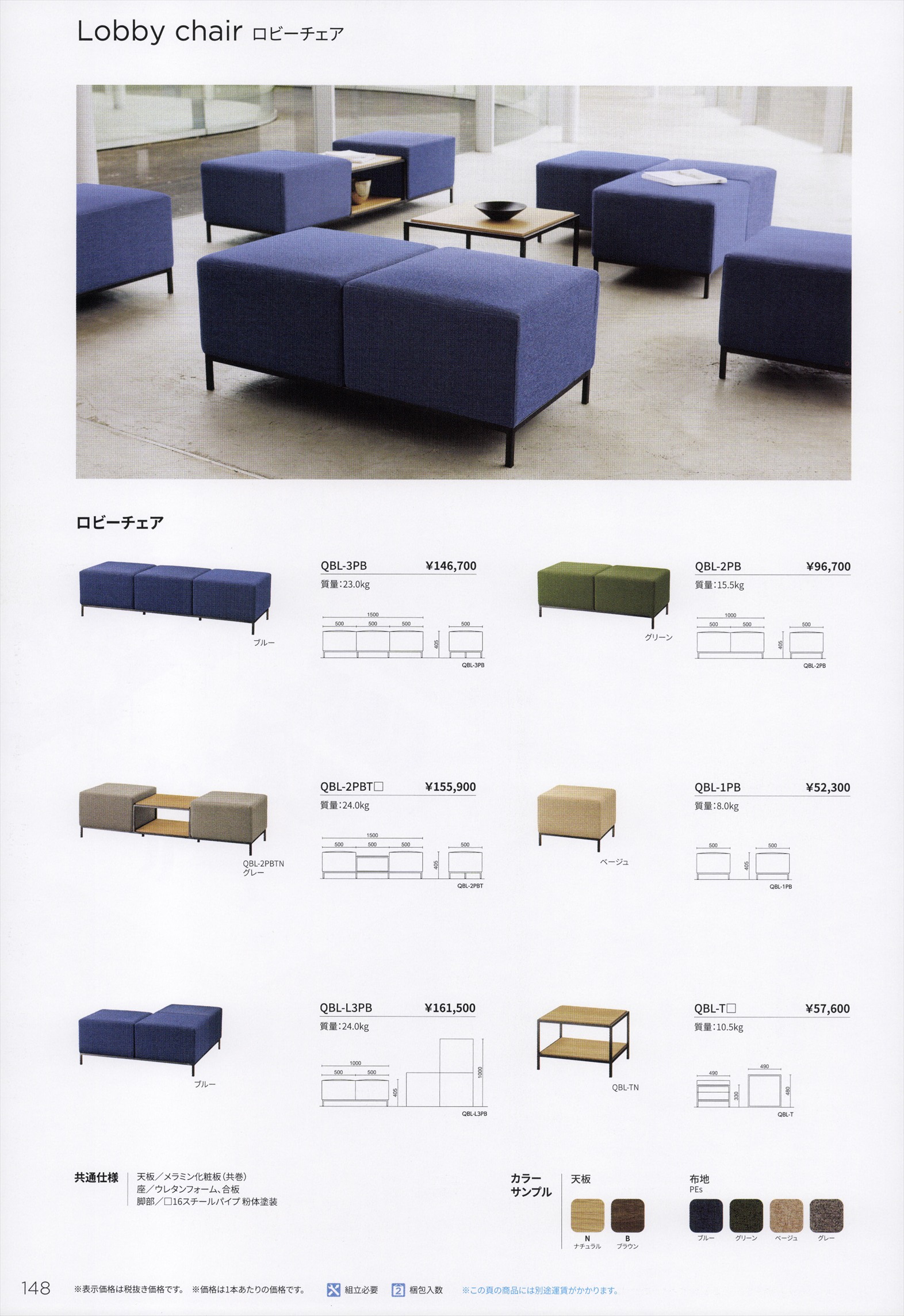 QBLー1PB ロビーベンチ 張地布4色より選択
