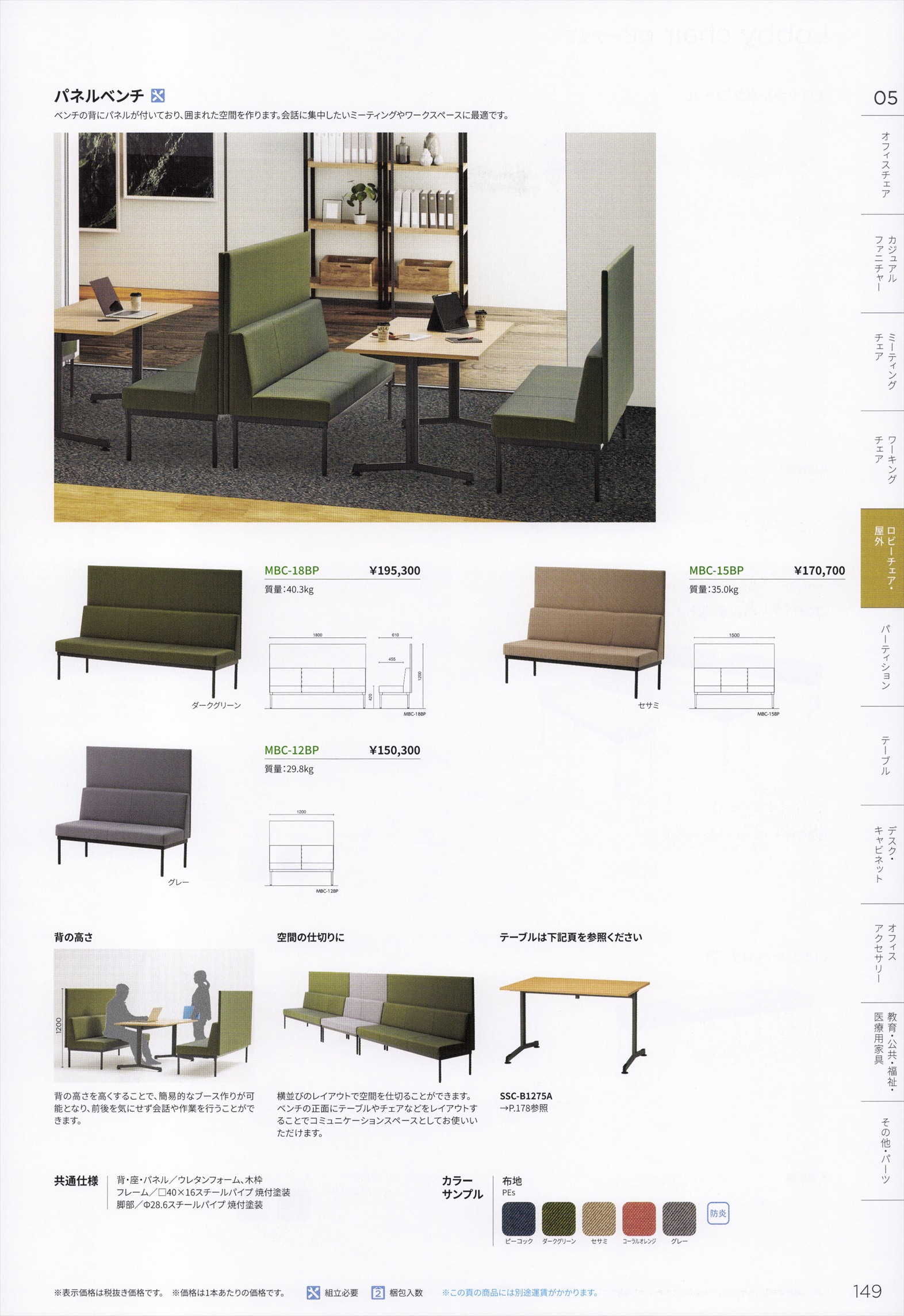 MBC-1BP(W1200) パネル付き ロビーベンチ 張地選択
