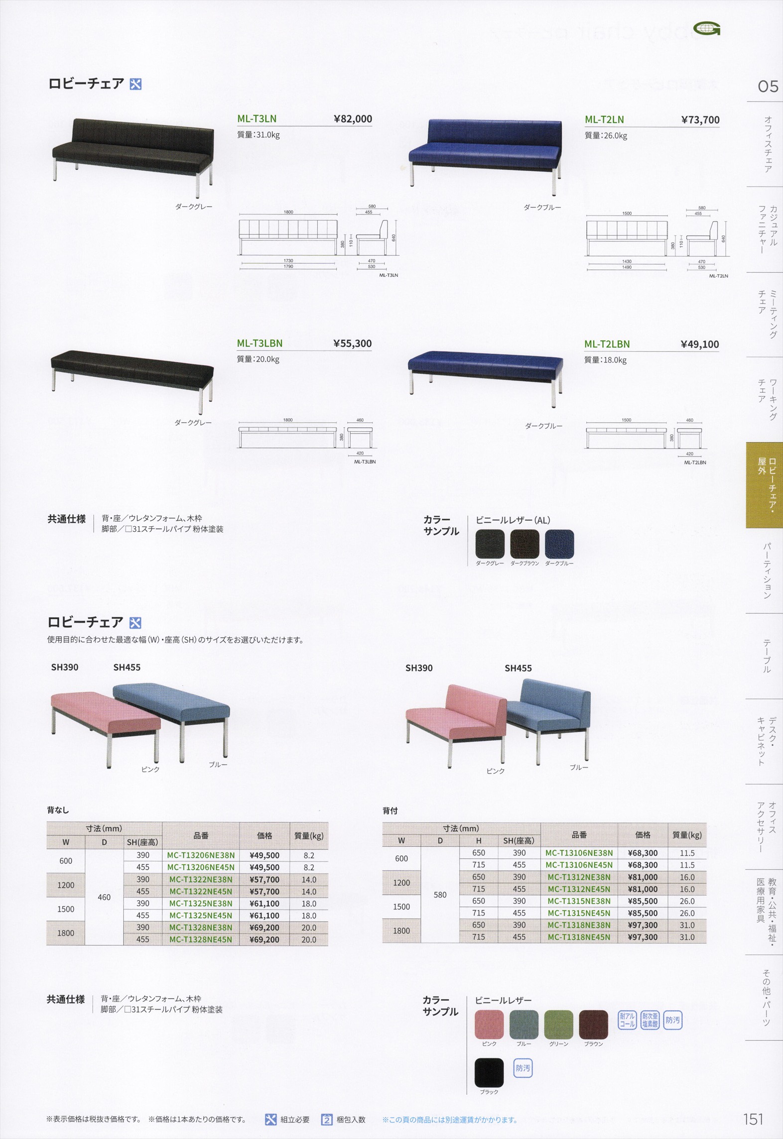 MC-T1325NE38N(W1500) ロビーベンチ 座カラー選択