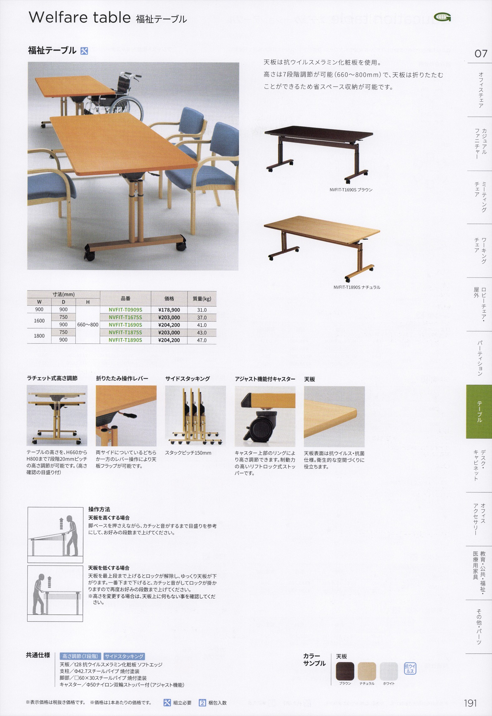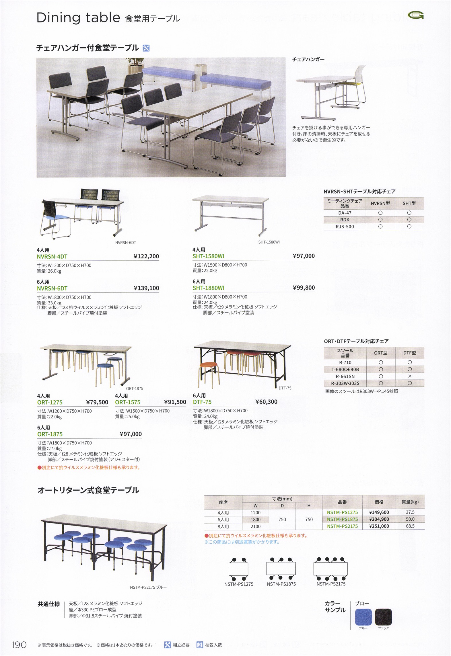 Dining table(食堂用テーブル) チェアハンガー付食堂テーブル,オートリターン式食堂テーブル / Welfare table(福祉テーブル) 福祉テーブル