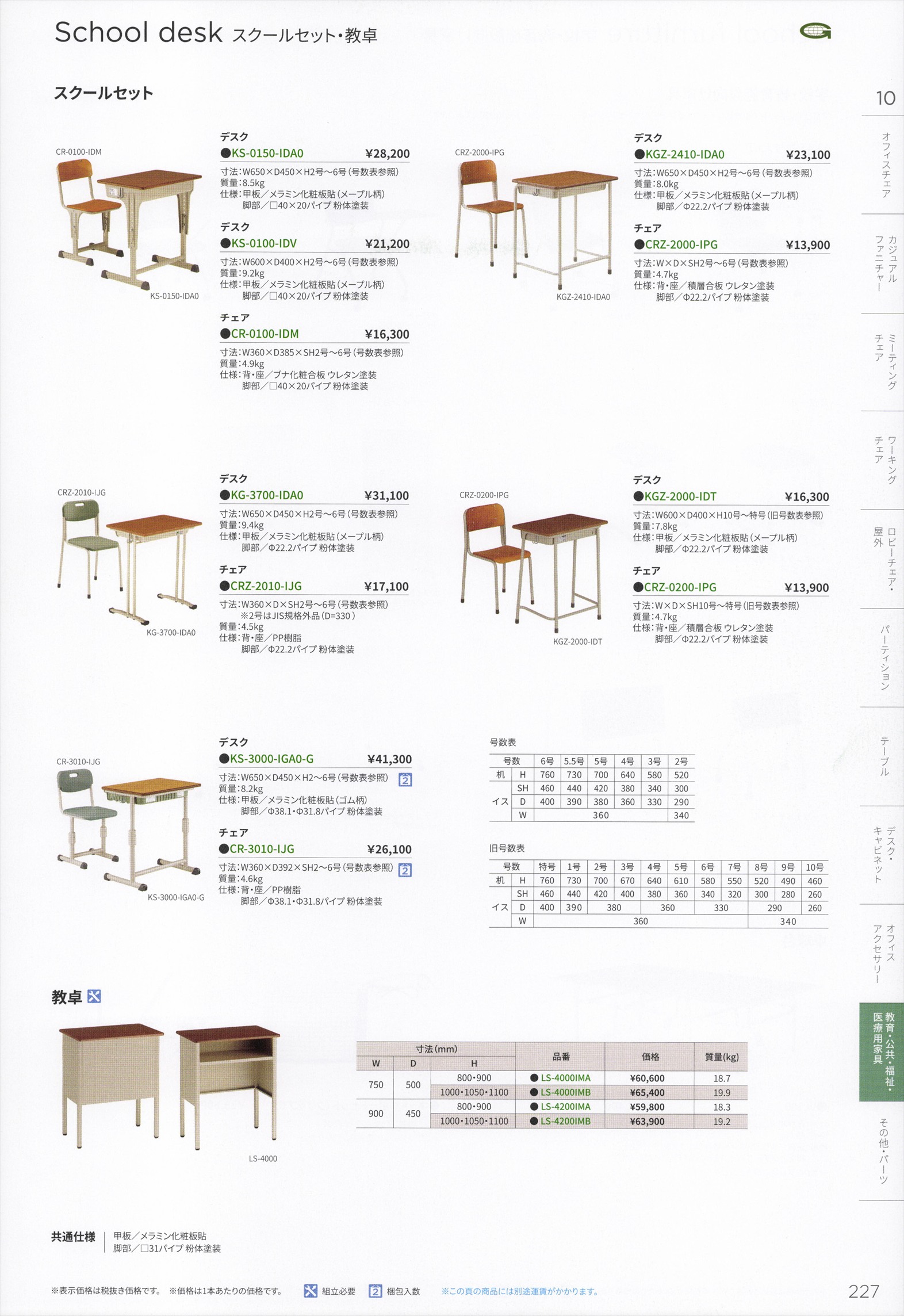 10 SCHOOL & OTHERS(教育・公共・福祉・医療用家具) / School desk(スクールセット・教卓) スクールセット,教卓